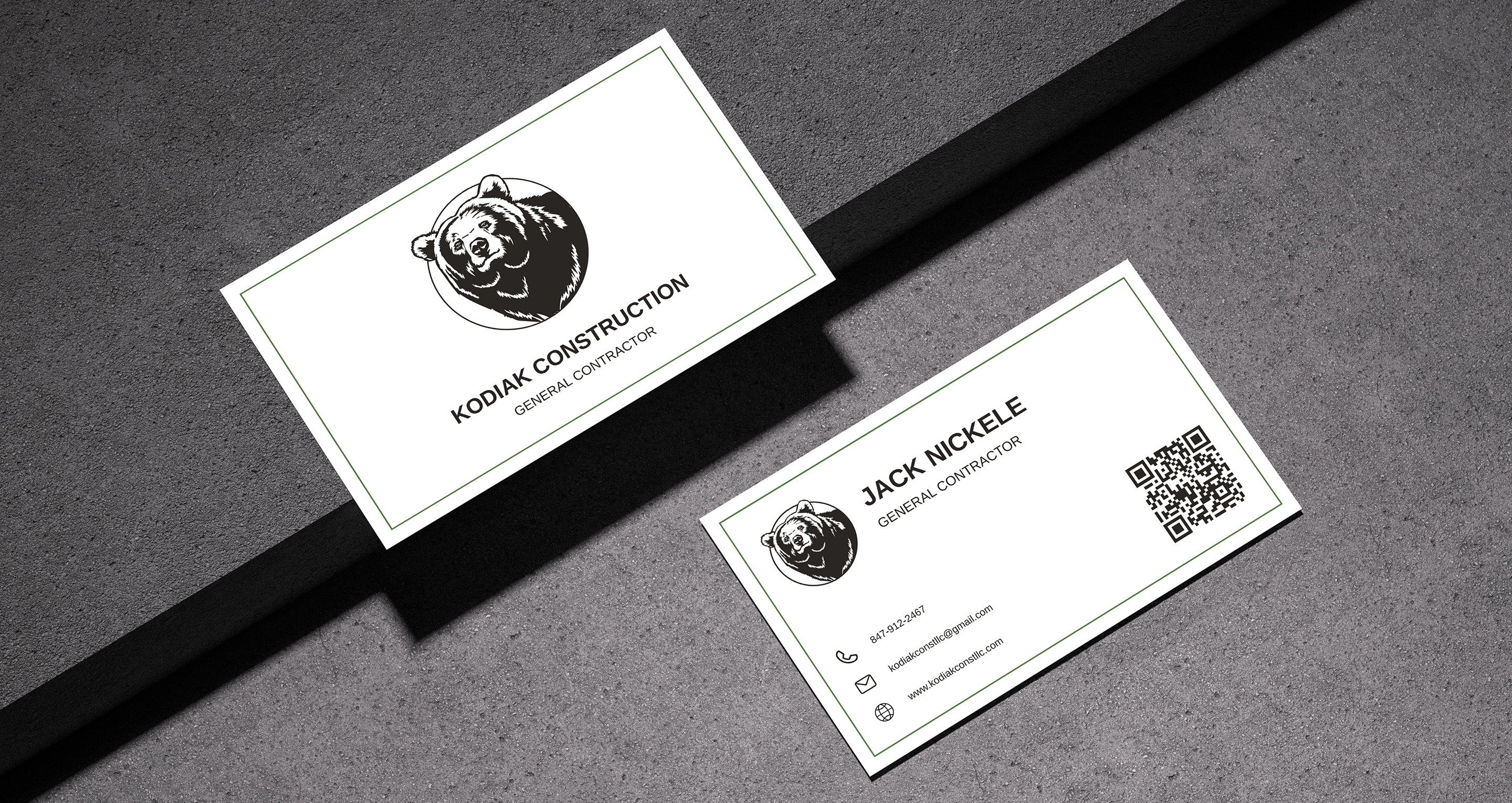 I created a bold and professional brand identity for Kodiak Construction, featuring a strong bear emblem to represent reliability and strength. The design was applied across business cards, promotional stickers, and custom patches for their workwear, ensuring a cohesive and impactful brand presence.